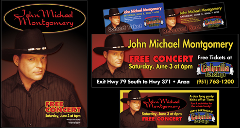 A marketing campaign was developed to include ads, billboards, banners, signs and tickets to promote a John Michael Montgomery concert.