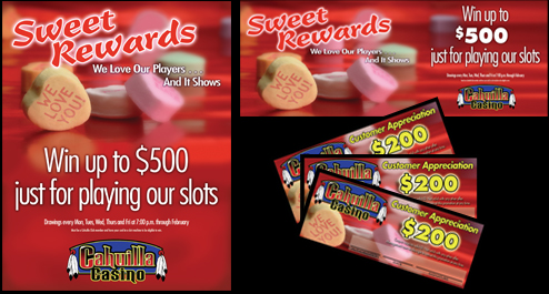 An example of the many posters, slot toppers, and tickets designed for gaming promotions.